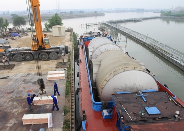 杭氧集團(tuán)在廣西杭氧盛隆投的8萬(wàn)m3/h空分設(shè)備  (國(guó)內(nèi)首套)已于2013年8月投入運(yùn)行,該8萬(wàn)空分設(shè)備的空冷、水冷塔是有美克斯機(jī)械制造,最終使用水路運(yùn)輸?shù)竭_(dá)目的地。